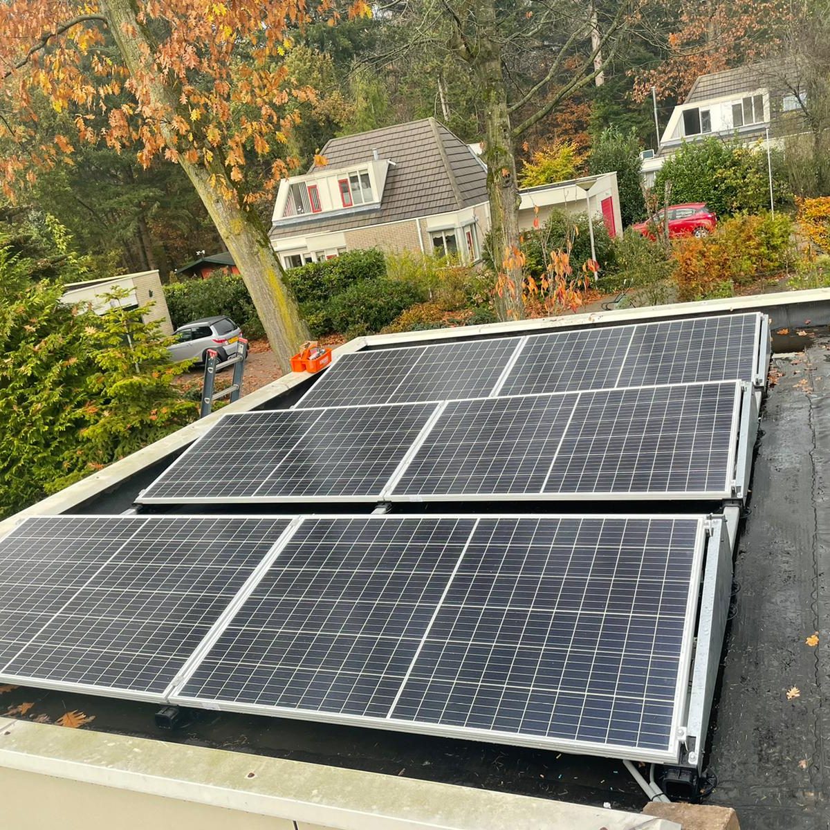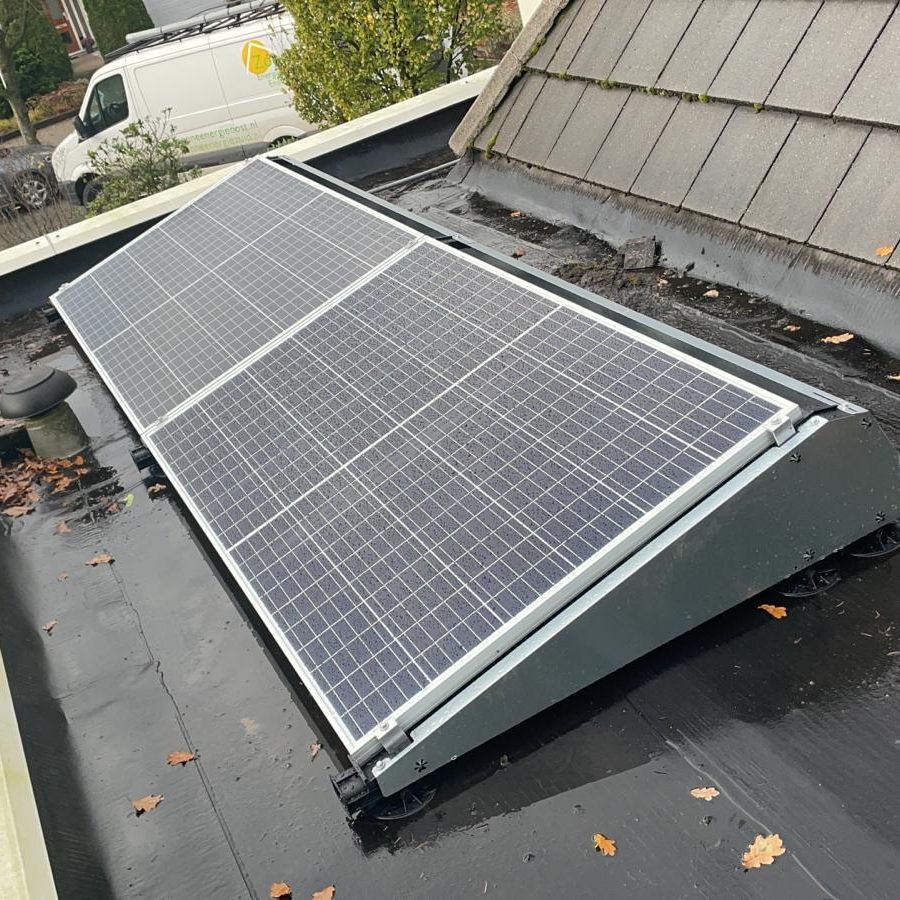 Bij deze installatie is gebruik gemaakt van een platdak opstelling. Er zijn 8 Suntech 330wp panelen geïnstalleerd. Doormiddel van een monitoring app kan de klant de opbrengst per dag inzien.