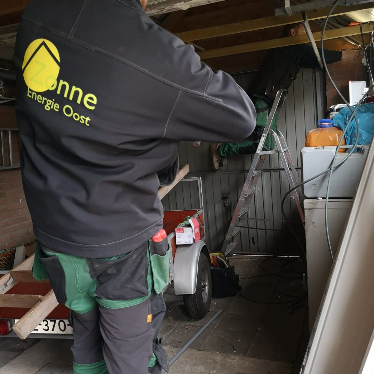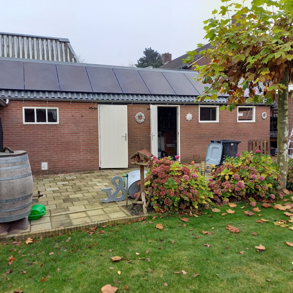 Op deze garage en schuur zijn 10 panelen van JA solar 325wp geplaatst. Deze panelen zien er strak uit op de grijze dak platen. Op de foto’s kunt u zien dat er ook met veel aandacht en zorg aan het binnen werk wordt gewerkt. Al met al weer een tevreden klant en wij ook tevreden.