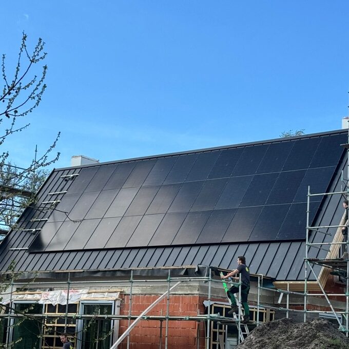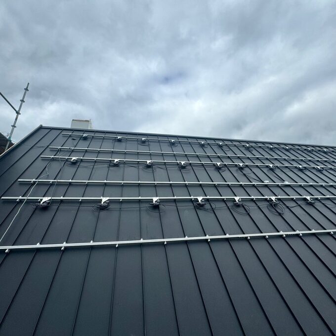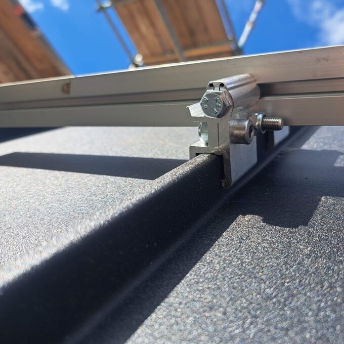 Hier is gebruik gemaakt van Felsnaad klemmen. Het klemsysteem voor felsdaken zorgt voor een goede ventilatie van de zonnepanelen en heeft een fraaie uitstraling.