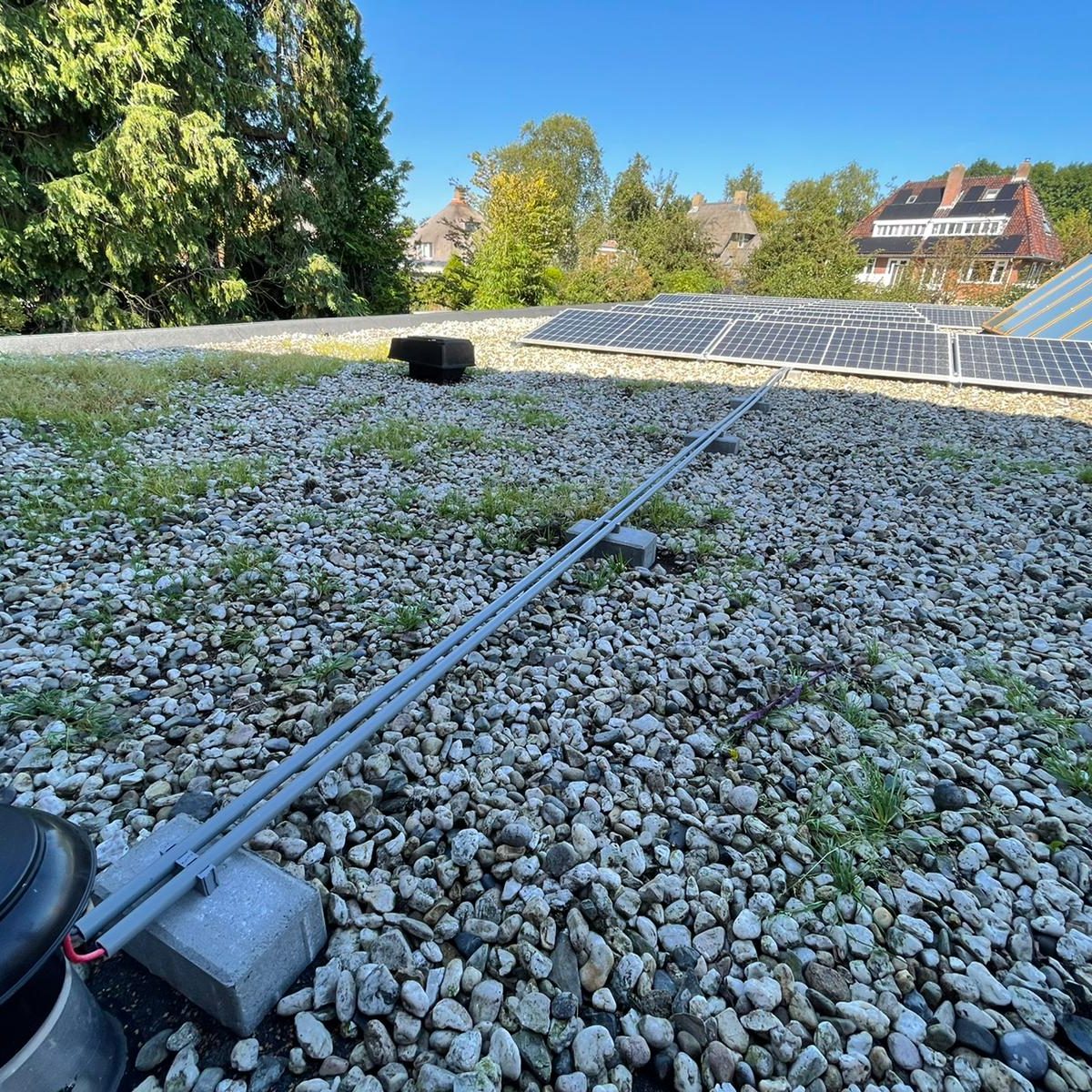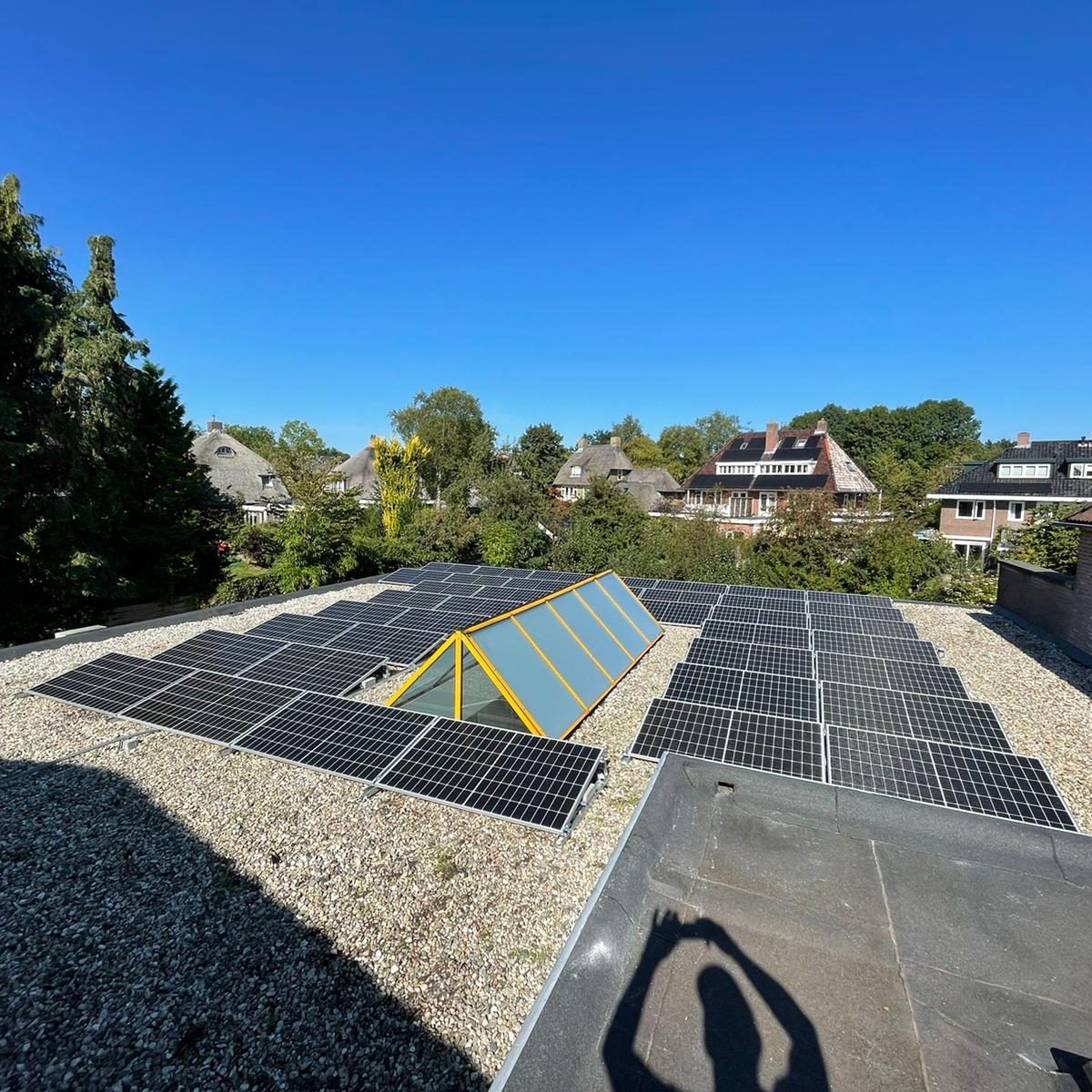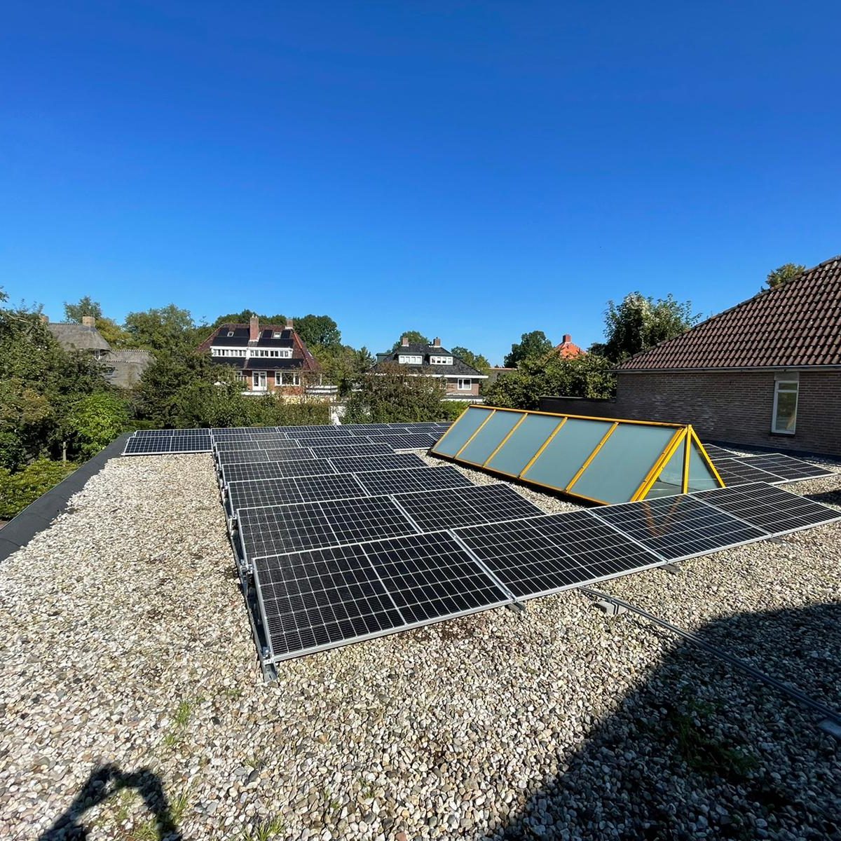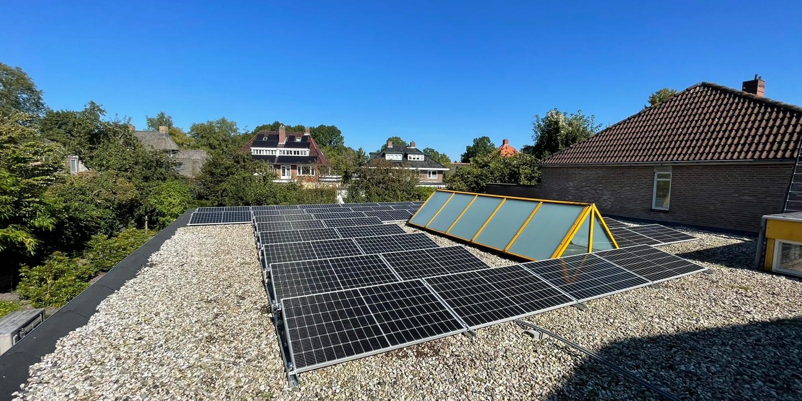 Op deze tandartsenpraktijk in Haren zijn 40 panelen van het merk Suntech geïnstalleerd. Er is hier gebruik gemaakt van een SolarEdge omvormer. Bij een parallel geschakeld systeem wordt er gebruik gemaakt van zogenaamde optimizers. Elk paneel krijgt een eigen micro-optimizer die zorgt voor de meeste optimale productie van stroom. De stroom wordt niet gelijk omgezet in wisselstroom, waardoor er nog wel een omvormer nodig is.
