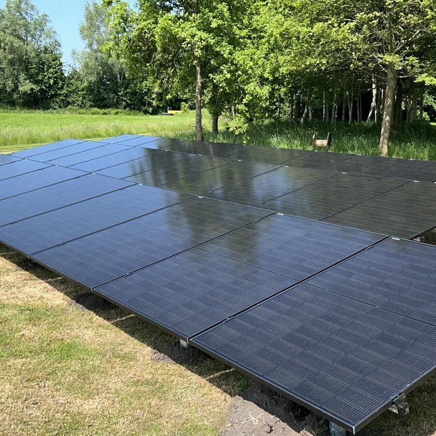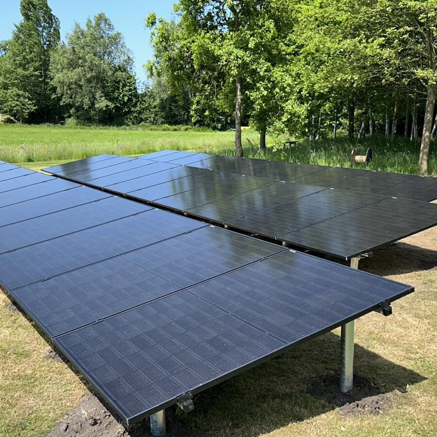 Hier is een veldopstelling geïnstalleerd met schroefpalen, er is hier gebruik gemaakt van micro